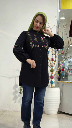 شومیز نخی مشکی گلدوزی آیریس