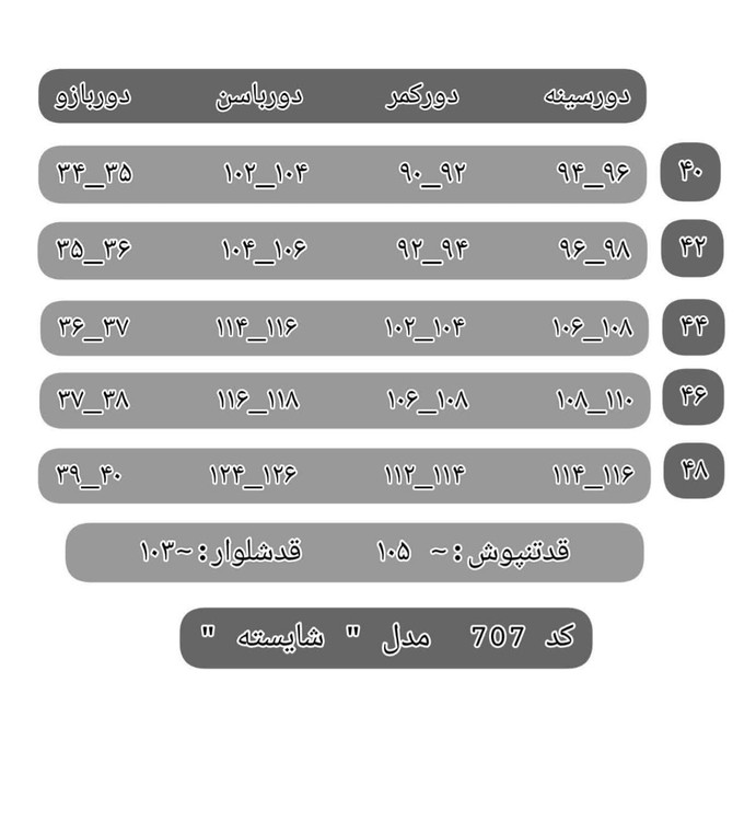 سایز ۴۰ تا ۴۸
