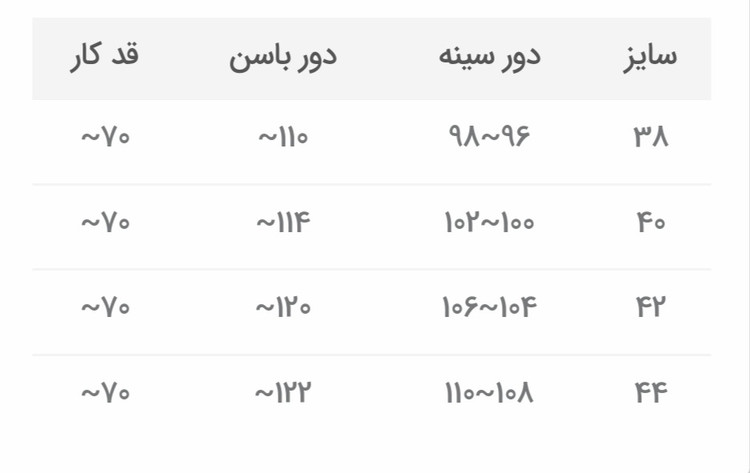 سایز ۳۸ تا ۴۴