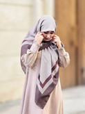 روسری نخی قواره بزرگ قهوه ای سبز کاملیا