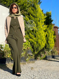 کت . جلیقه تمام پوشیده و شلوار بگ جیب دار پشت شلوار دارای کش