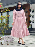 دارای کمربند و گلدوزی شده و پشت کار دارای زیپ تا بالای باسن
