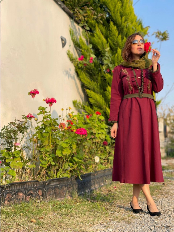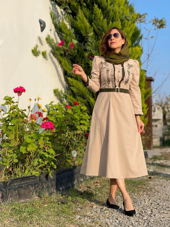 دارای کمربند و گلدوزی شده و جلو کار دکمه دار