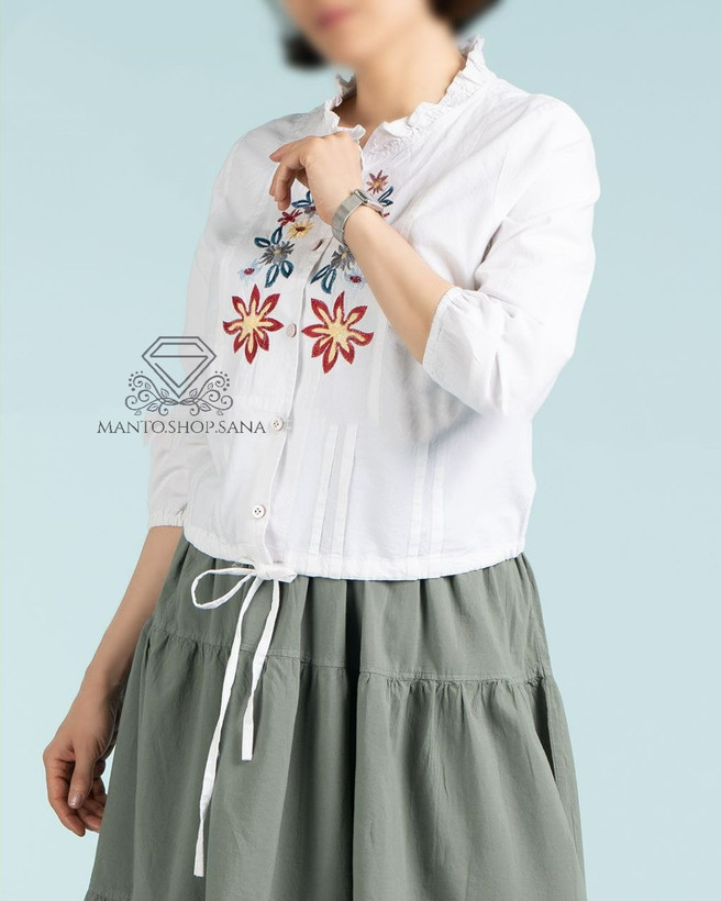 دکمه دار و گلدوزی دارای آستین مچی و کش دار