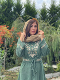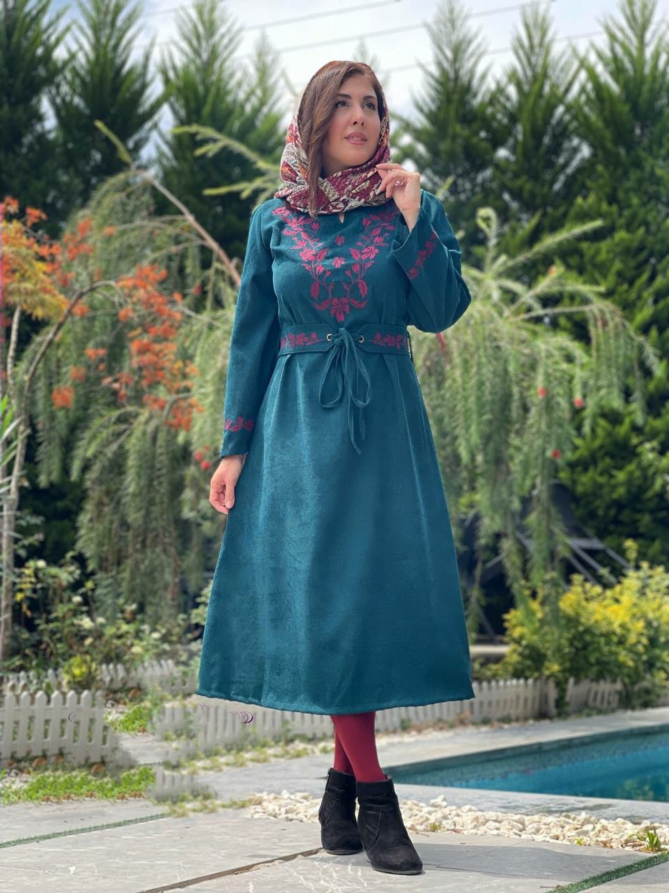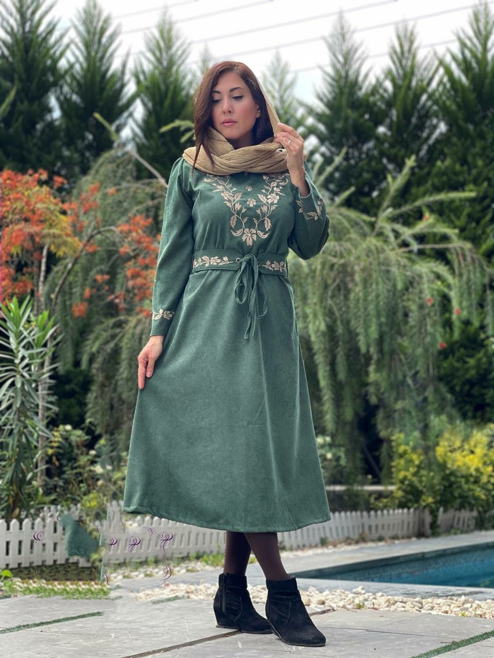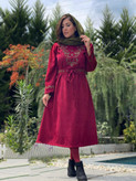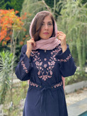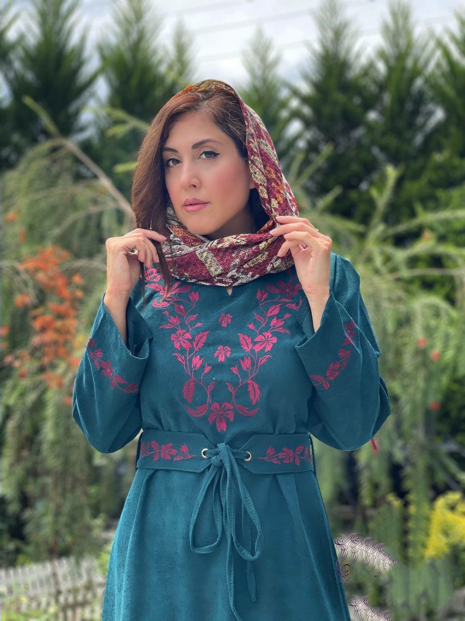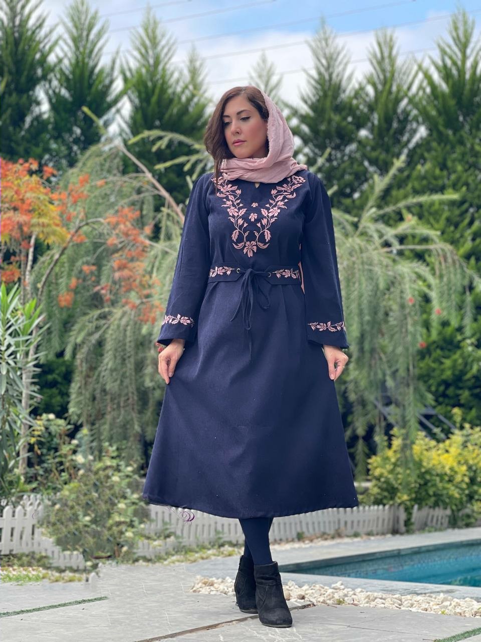 گلدوزی شده .مانتو جلو بسته .جیب دار و پشت لباس زیپ دار. کمربند دار