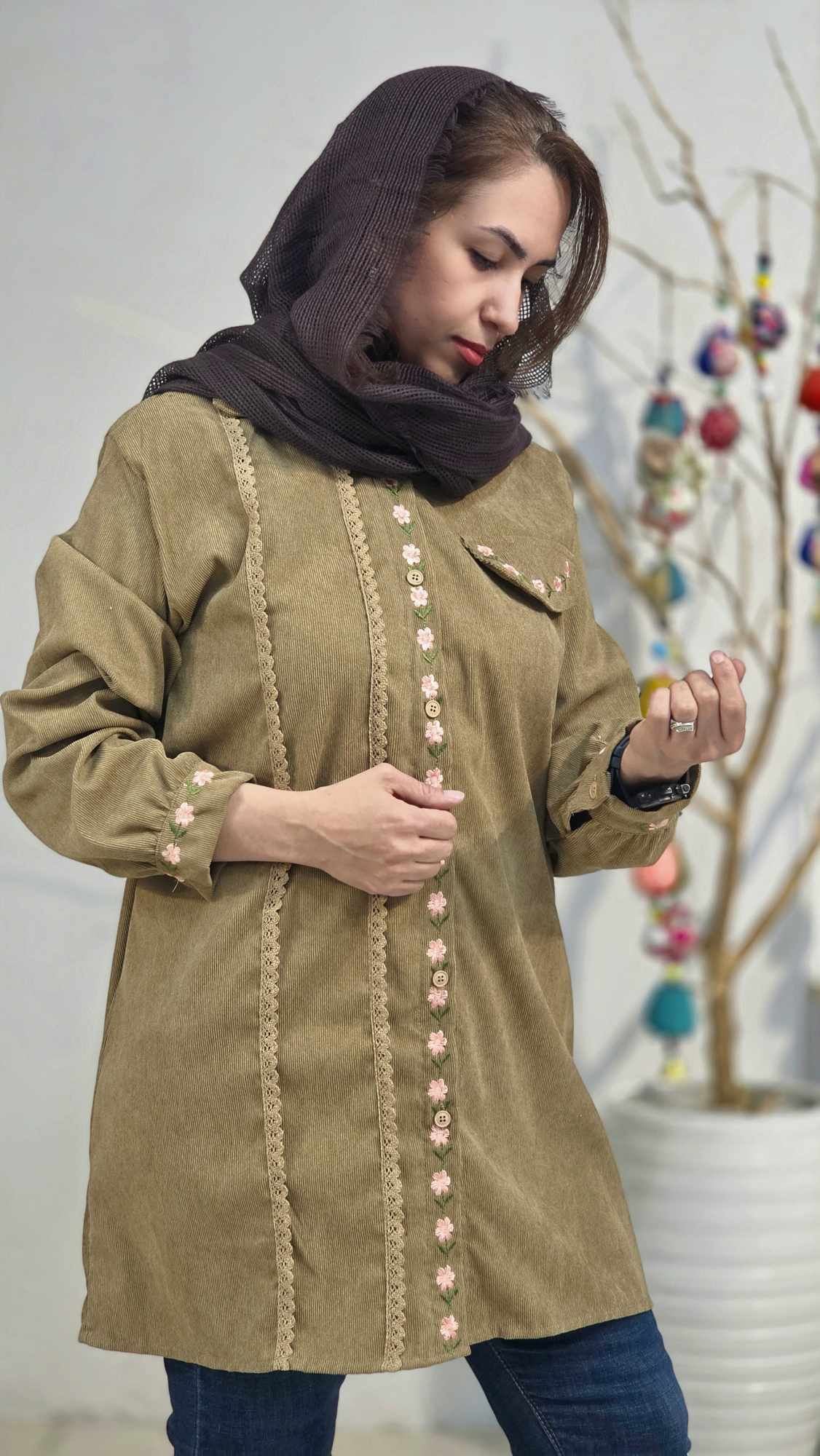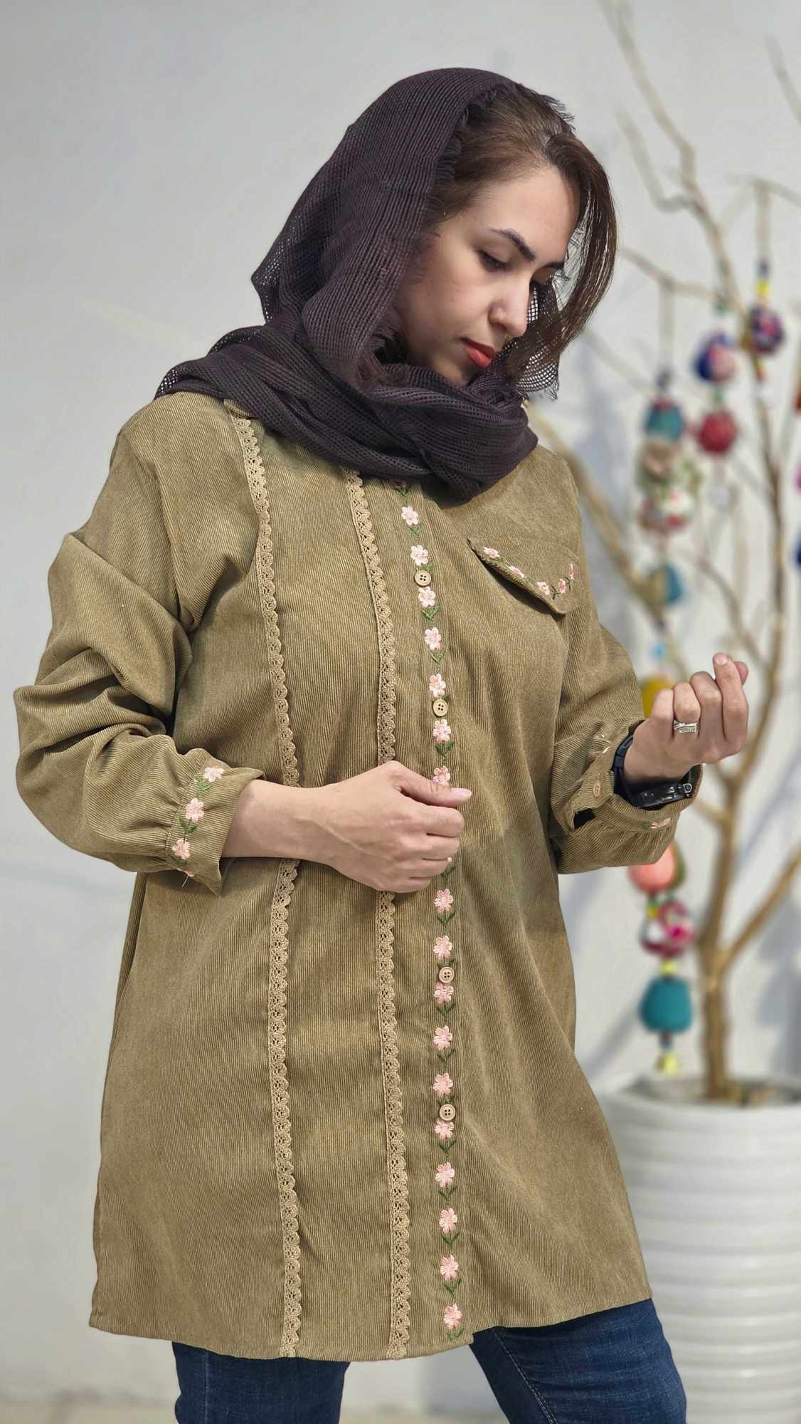 جلو دکمه دار و استین مانتو مچی و دکمه دار