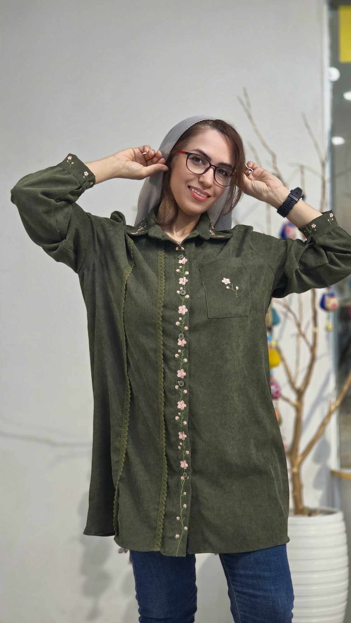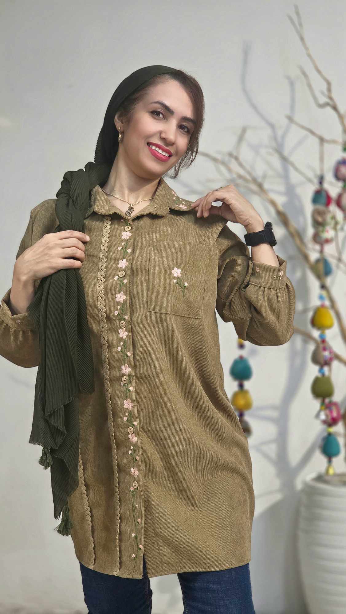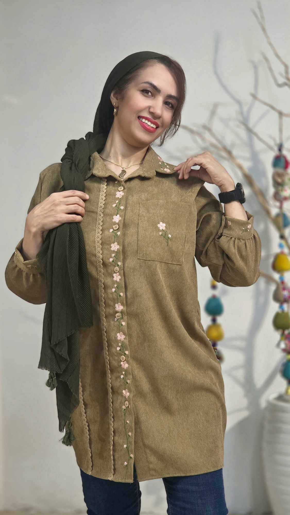 جلو دکمه دار و استین مانتو مچی و دکمه دار